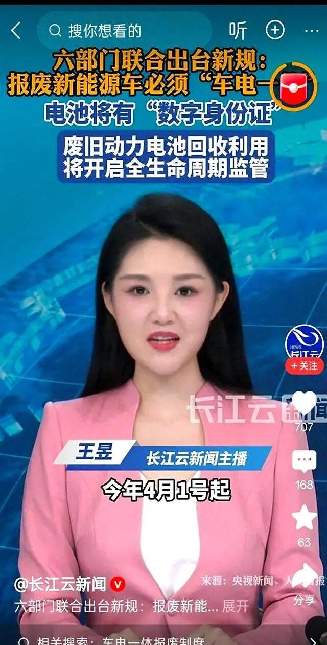 工信部联合六个部分,直接甩出一份《新能源轿车废旧动力电池收回和综合使用办理暂行办法》,2026年4月1日履行。
